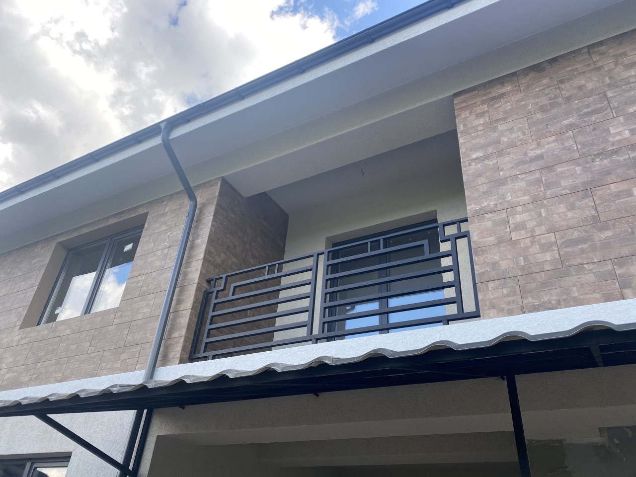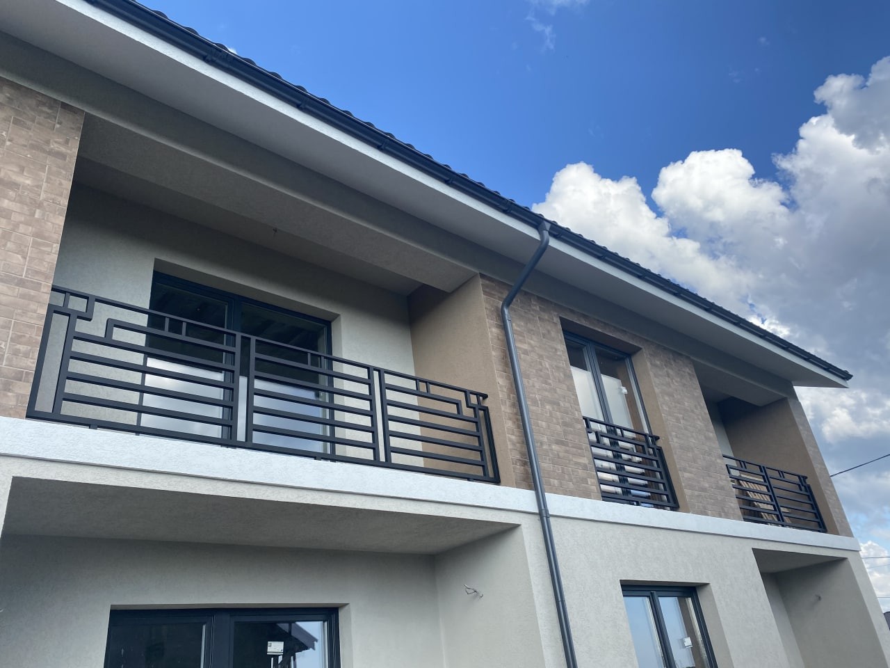 Перила виготовлені за проектом замовника, з металу, фарбовані в чорний матовий колір. Встановлені на котеджних будинках в м.Ужгород, Сторожниця