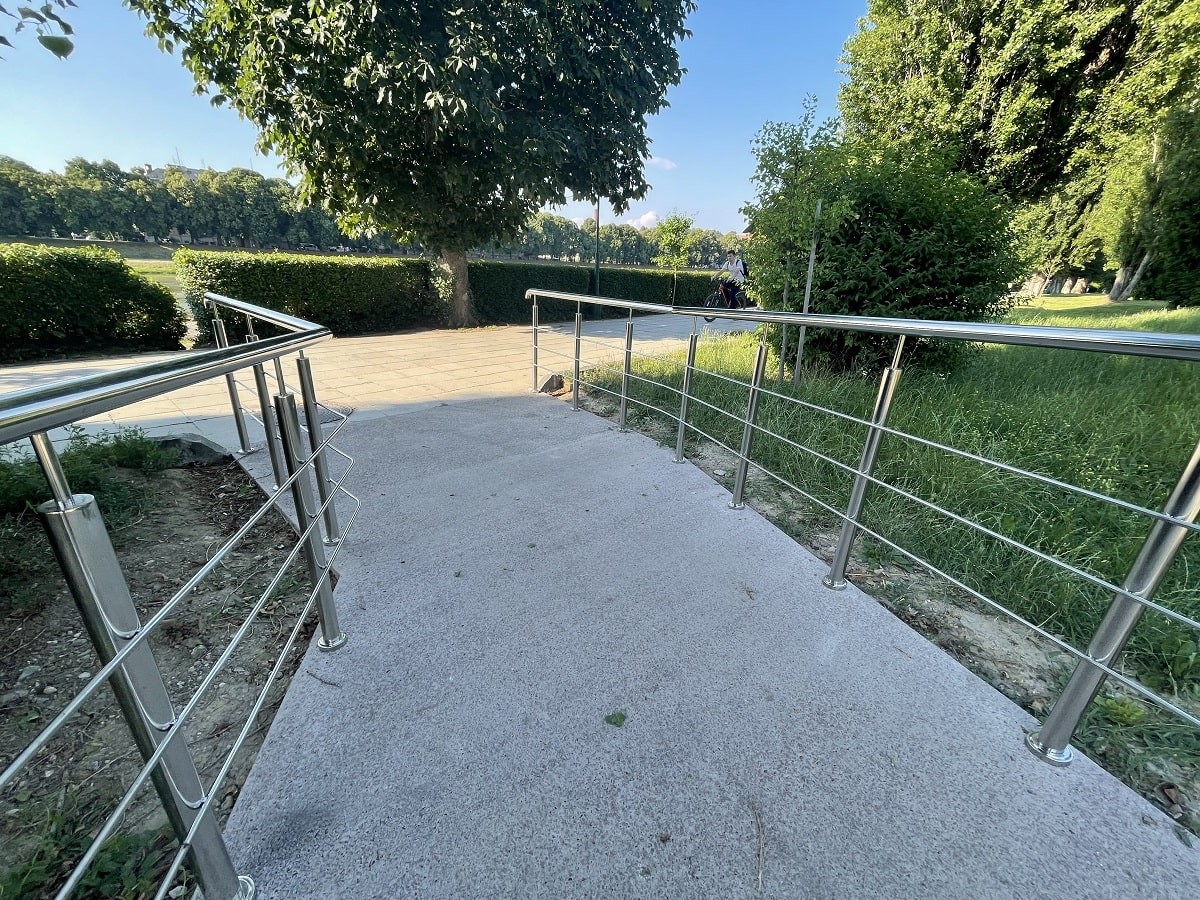 Огородження пандусів на набережній в м.Ужгород. З нержавіючої сталі , з круглих труб. Дуже гарне та практичне рішення огородження для міста, адже такі перила не треба буде фарбувати з часом і вони додають нотку сучасності .