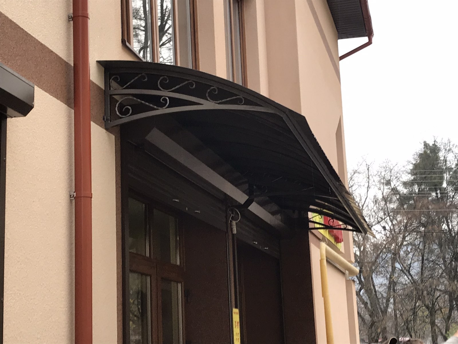 Для любителів гарних козирків та навісів з декоративними елементами готовими або зробленими вручну на виробництві – пропонуємо такі варіанти .