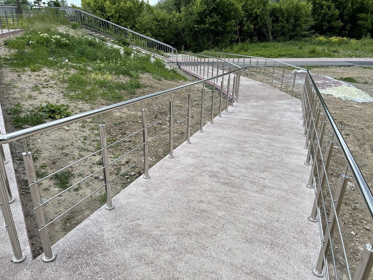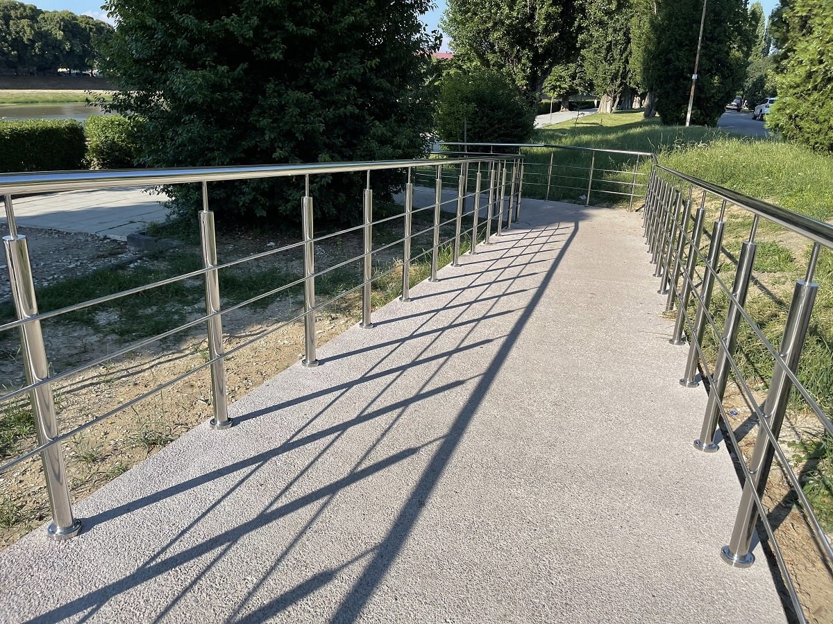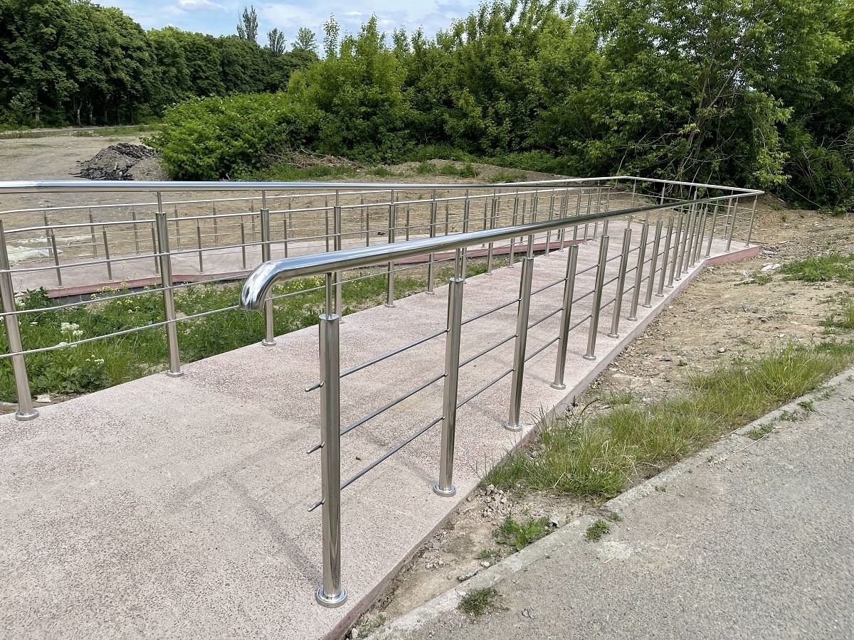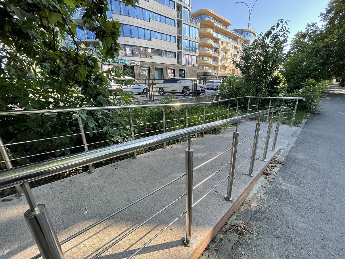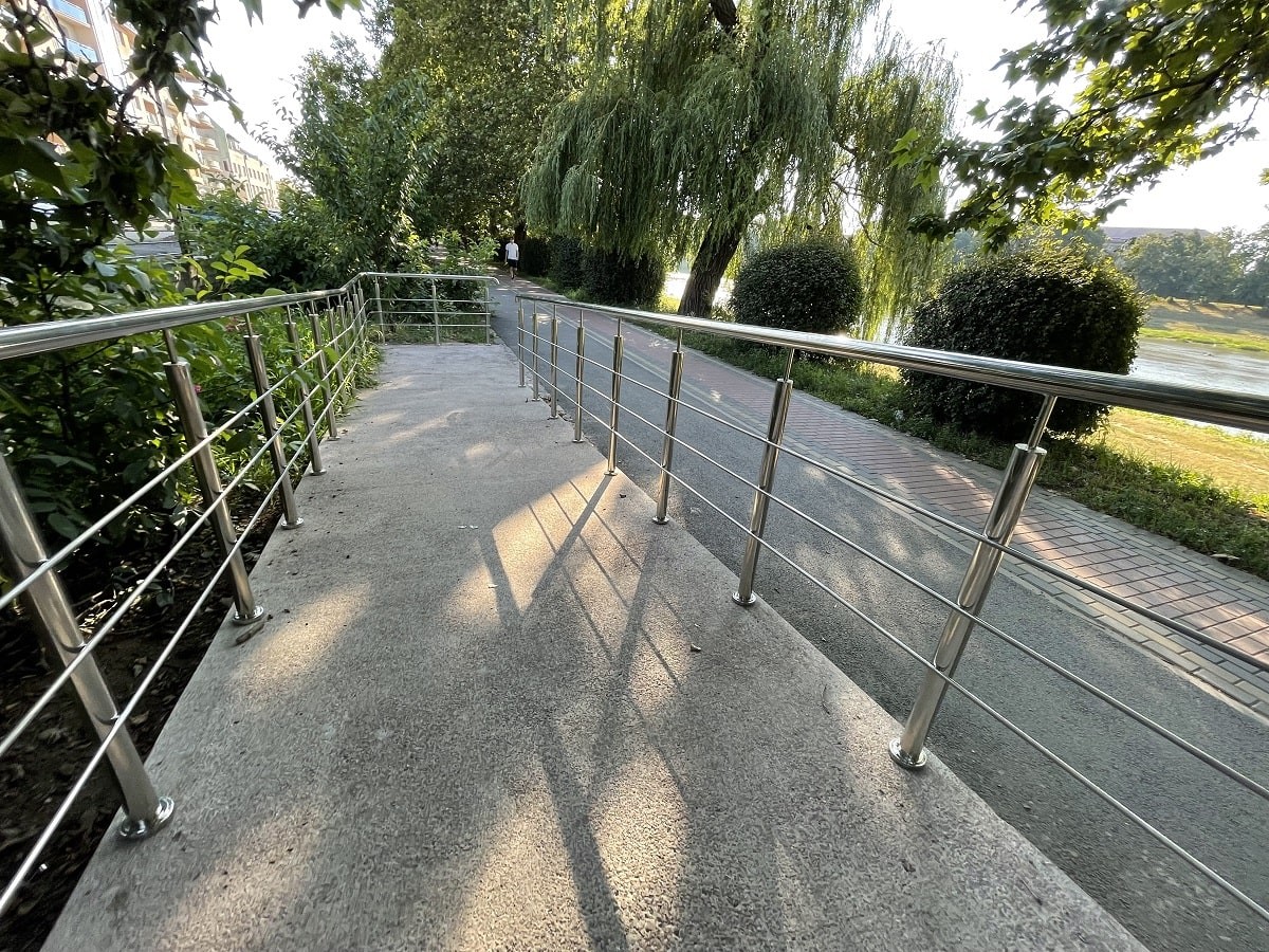 Огородження пандусів на набережній в м.Ужгород. З нержавіючої сталі , з круглих труб. Дуже гарне та практичне рішення огородження для міста, адже такі перила не треба буде фарбувати з часом і вони додають нотку сучасності .